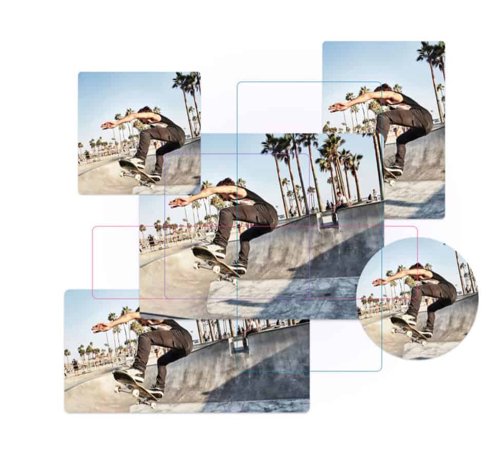 With the browser-based Frameright editor, anyone can define various regions and shapes for an image. This information is embedded inside the image file’s metadata, so the image knows how it should be cropped to different sizes and ratios, no matter where it is used. The editing process is guided by our own Frameright AI, which understands image composition and dynamics.