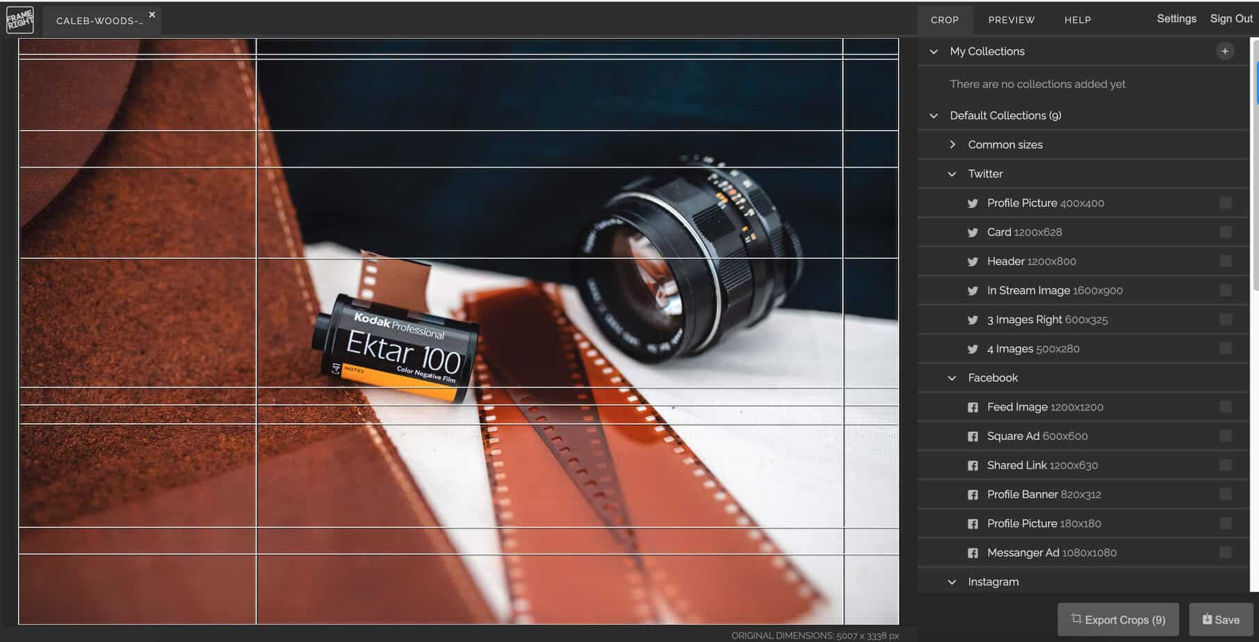 Frameright also provides extensive presets for the most common channels like Facebook, Twitter, Open Graph images, etc. And users can, of course, create their own templates that exactly match their own channels.