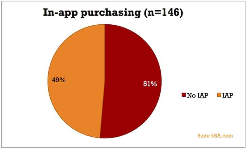 First of all, we found that IAP is on the rise: currently, 49% of the top-ranking photo/video apps offer IAP, compared to only 37% two years ago.
