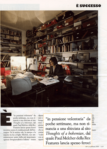 As you can see, its starts with a reference to this blog. In a nutshell, it reads, “although in an voluntary retirement, she does not renounce to a glimpse at the site “Thoughts of a Bohemian” by Paul Melcher who frequently launches in ferocious critisms of the multinationals of photography.” Or something close to that.