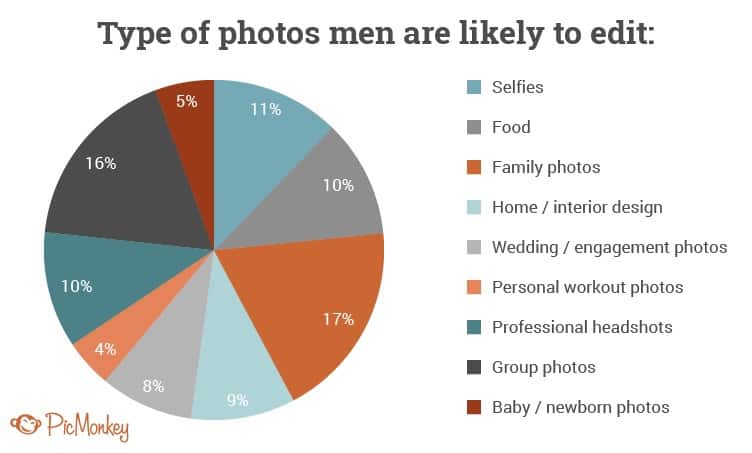 Here is a full breakdown of what type of photos men and women are likely to edit: